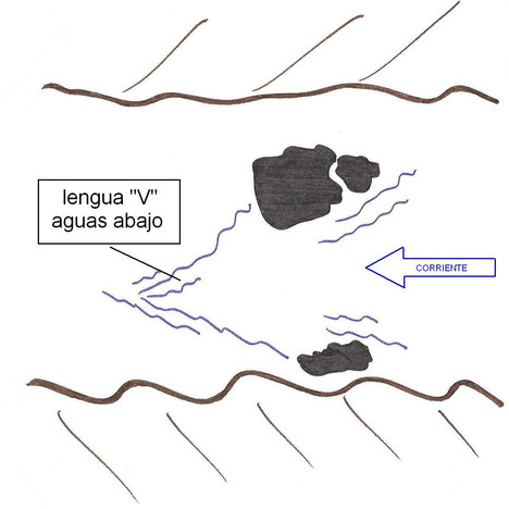 profundos y despejados (lenguas “V” aguas abajo) o la existencia de peligros